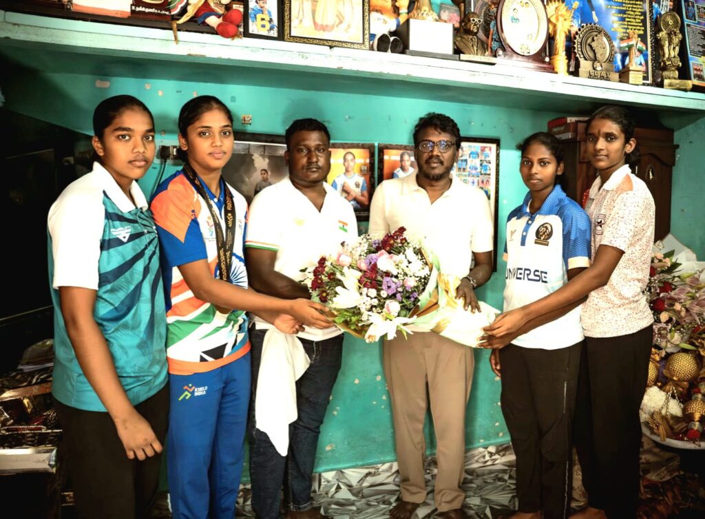 கபடி வீராங்கனை கார்த்திகாவிற்கும், கண்ணகிநகர் கபடிகுழுவிற்கும் 10 லட்சம் காசோலை வழங்கிய இயக்குநர் மாரிசெல்வராஜின் பைசன் படக்குழு