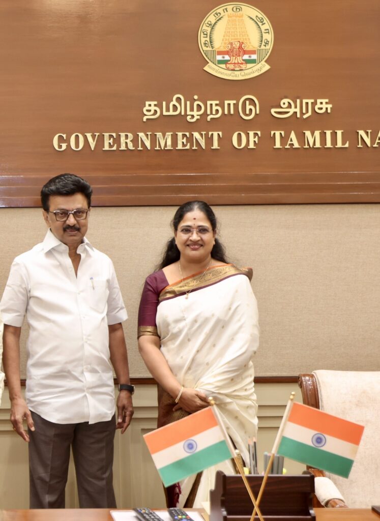Malathy Lakshman called on Honourable Chief Minister M. K. Stalin and received his greetings