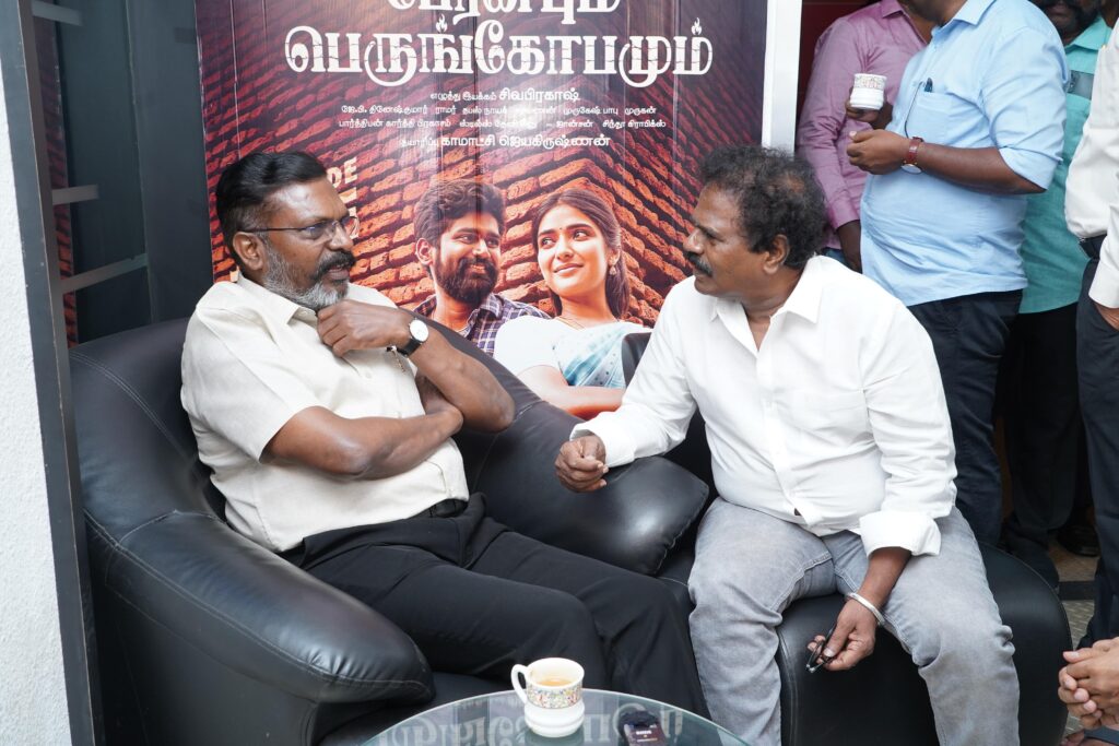 படம் பார்த்துவிட்டு தொல். திருமாவளவன் பேசும்போது, “பேரன்பும் பெருங்கோபமும் என்கிற இந்த திரைப்படம் புதிய கோணத்தில் ஆணவக் கொலையை அணுகுகிறது. இந்த படம் சாதிய முரண்களை விரிவாக, நுட்பமாக, மிக ஆழமாக பேசுகிறது. சாதி மாறி திருமணம் செய்யக்கூடாது என்பது காலம் காலமாக நம் சமூகத்தில் இருந்து வருகின்ற ஒன்று. இதனால் ஆணவக் கொலைகள் அவ்வப்போது நடந்திருக்கின்றன. அவ்வாறு சாதி மாறி திருமணம் செய்து கொள்கின்ற ஆணாக இருந்தாலும் சரி, பெண்ணாக இருந்தாலும் சரி அவர்களை அந்தந்த சமூகம் ஏற்றுக் கொள்வதில்லை. உறவினர் ஏற்றுக் கொள்வதில்லை. பெற்றோரும் ஏற்றுக்கொள்வதில்லை.. அதையும் தாண்டி அவர்களை படுகொலை செய்யும் கலாச்சாரமும் நம்மிடையே வலுவாக இருக்கிறது.