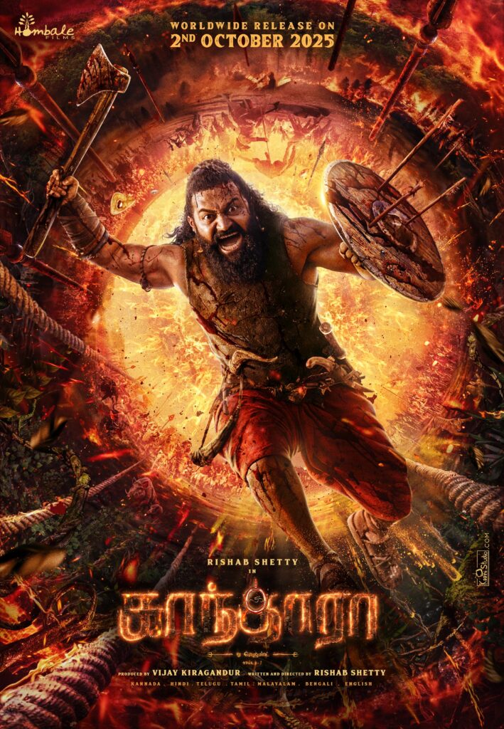 ரிஷப் ஷெட்டி பிறந்த நாளையொட்டி, ஹொம்பாலே பிலிம்ஸ் காந்தாரா: சேப்டர் 1 படத்தின் அதிரடியான புதிய போஸ்டரை வெளியிட்டுள்ளது – இப்படம் வரும் அக்டோபர் 2, 2025 அன்று திரைக்கு வருகிறது!
