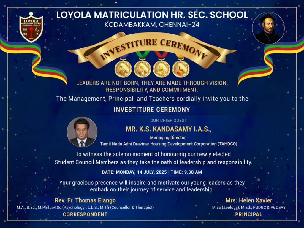 –கோடம்பாக்கம் இலயோலா பள்ளியின் 52வது தலைமைத்துவ விழாவைக் கொண்டாடுகிறது.