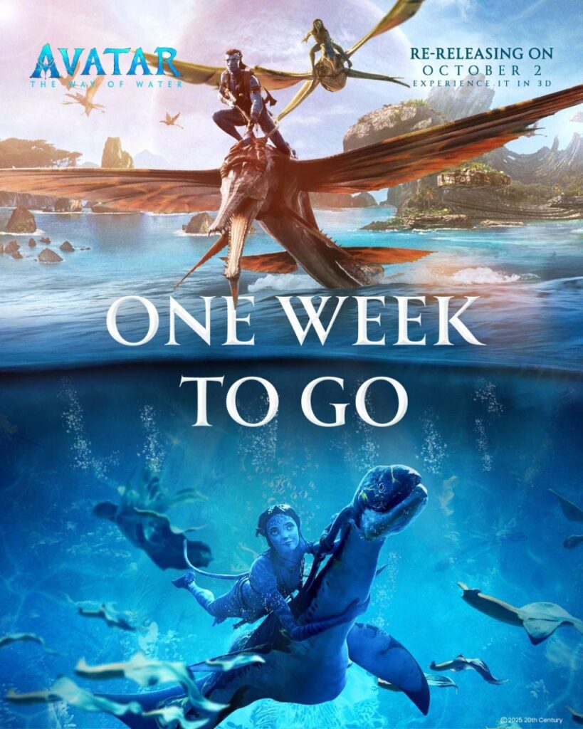 பண்ரோராவின் உலகிற்கு மீண்டும் செல்ல இன்னும் ஏழு நாட்களே உள்ளது. ‘அவதார்: தி வே ஆஃப் வாட்டர்’ அக்டோபர் 2, 2025 அன்று திரையரங்குகளில் வெளியாகிறது!